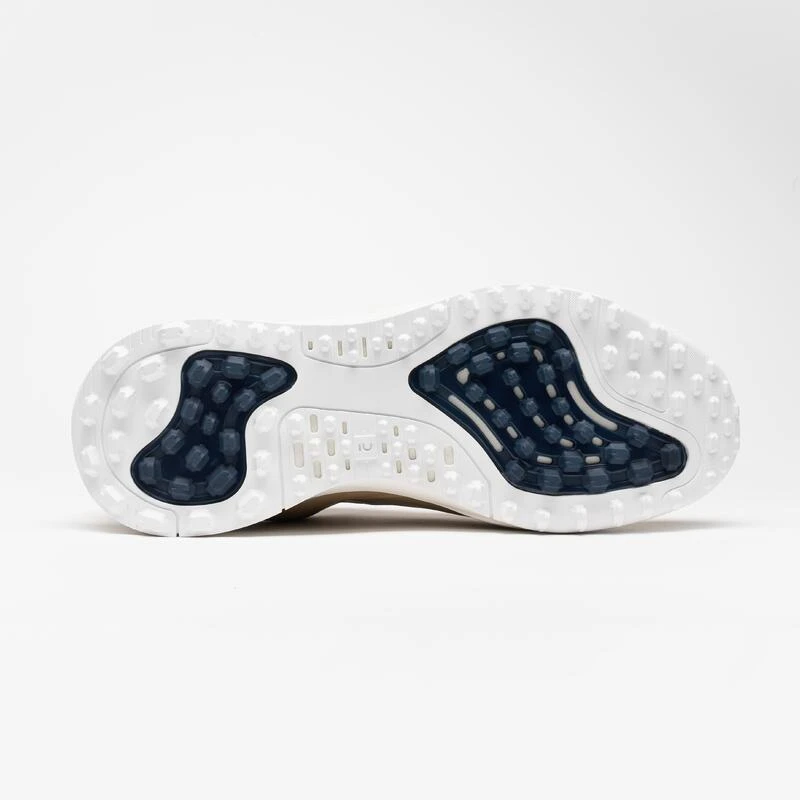 On a ainsi dessiné une semelle asymétrique, où chaque crampon répond à une fonction précise : longueur, largeur, hauteur, il n’y en quasi pas deux identiques ! Ils sont également répartis sur la surface de la semelle de manière à correspondre aux zones de pression lors de la marche et du swing. Ce travail sur les crampons permet de garantir d’excellentes qualités d’accroche tout en limitant l’usure.